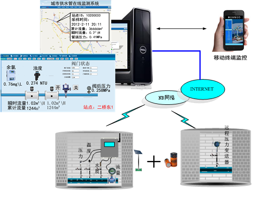 為保證供水工作的科學(xué)性,依靠現(xiàn)代計算機通信技術(shù)和傳感技術(shù)實施對供水管道的無人化遠(yuǎn)程實時監(jiān)測,并且能夠自動傳輸?shù)缴厦娓骷壷鞴懿块T,監(jiān)測輸水管道、城市供水管道的壓力、流量信息;及時發(fā)現(xiàn)管網(wǎng)故障,提高維護(hù)效率、降低損失,保障輸水、供水質(zhì)量,達(dá)到科學(xué)預(yù)警,減少成本,提高效率的目的