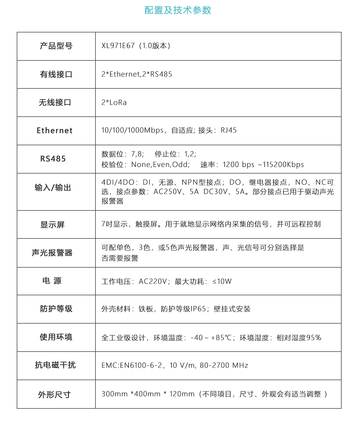 XL971E67網(wǎng)關(guān)終端,是集成XL95物聯(lián)網(wǎng)關(guān),7吋顯示屏、聲光報警器,及電源、開關(guān)、控制箱等等的物聯(lián)網(wǎng)接收終端,讓客戶安裝使用更加方便。