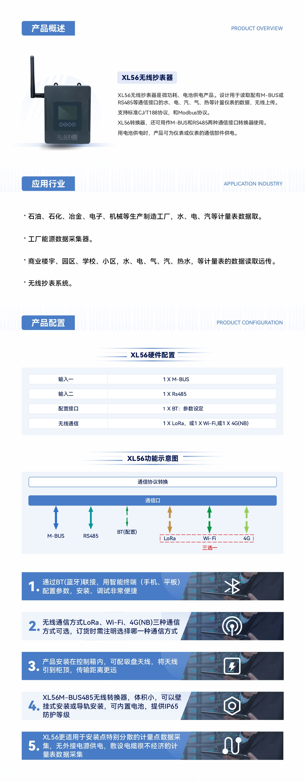 XL56無線轉(zhuǎn)換器,也可實現(xiàn)M-BUS和RS485兩個通信接口相互轉(zhuǎn)換。