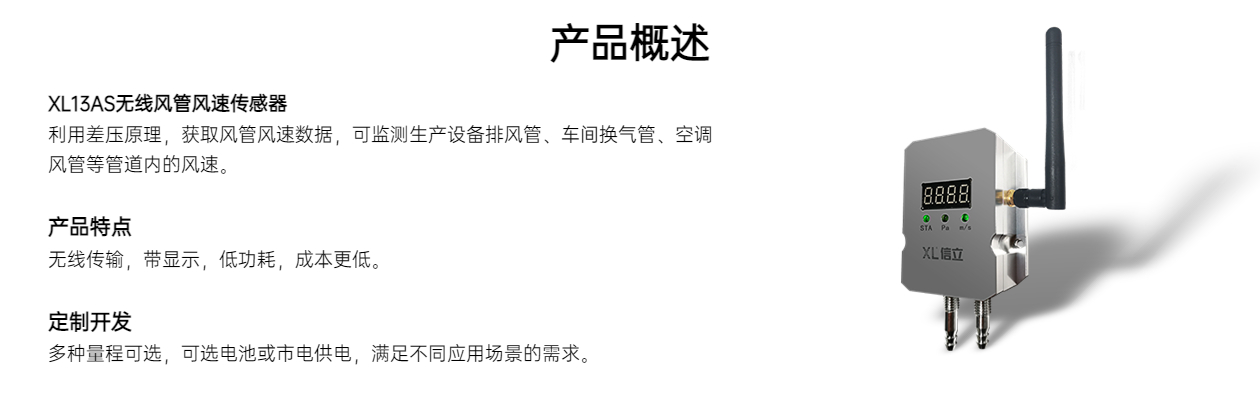 XL13AS智能風(fēng)速傳感器,按低功耗、電池供電標(biāo)準(zhǔn)設(shè)計(jì),帶顯示,多種量程可選,體積小,安裝接線簡單、便捷,適應(yīng)不同的場景的需求。