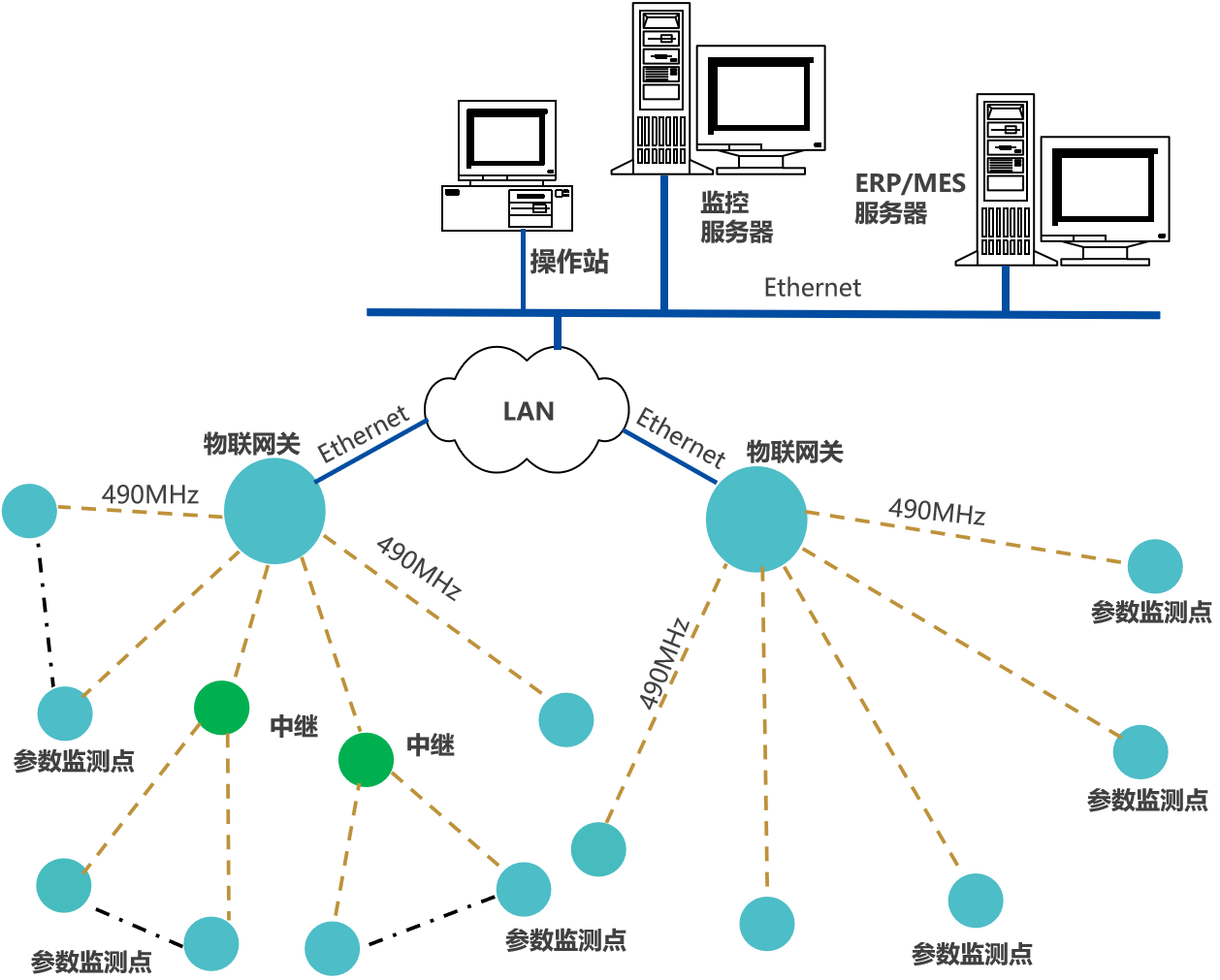 應(yīng)用于跨車間、廠房,節(jié)點(diǎn)電池供電的無線傳輸;傳輸距離500m至10Km