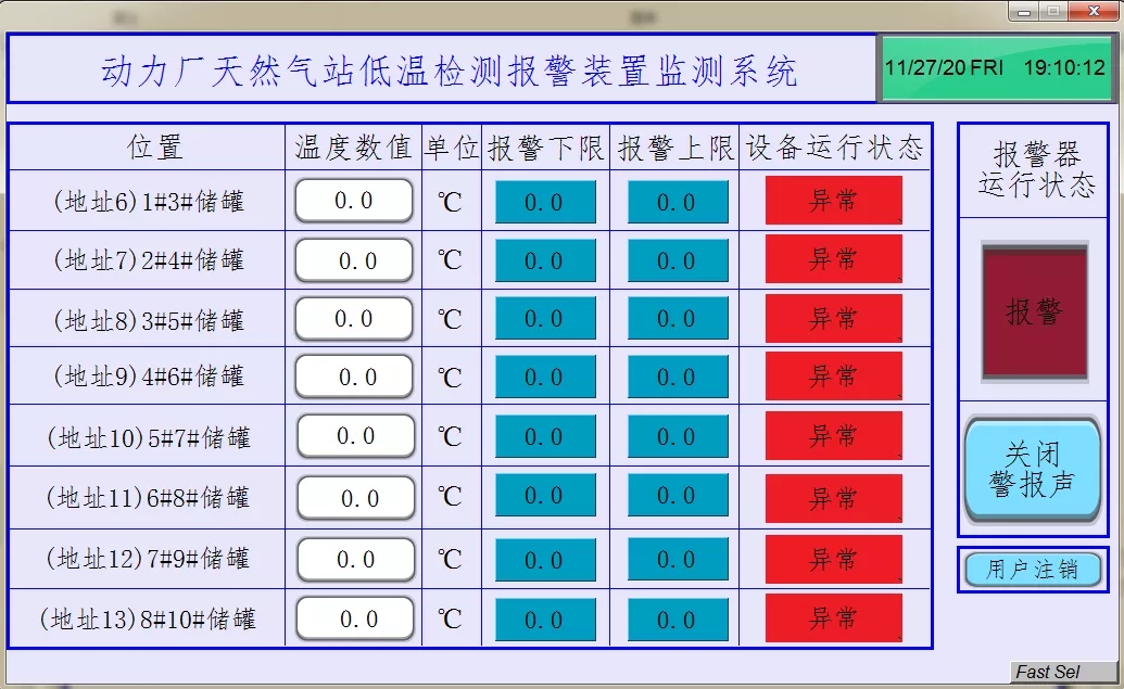 低溫檢測(cè)監(jiān)測(cè)系統(tǒng)界面主界面