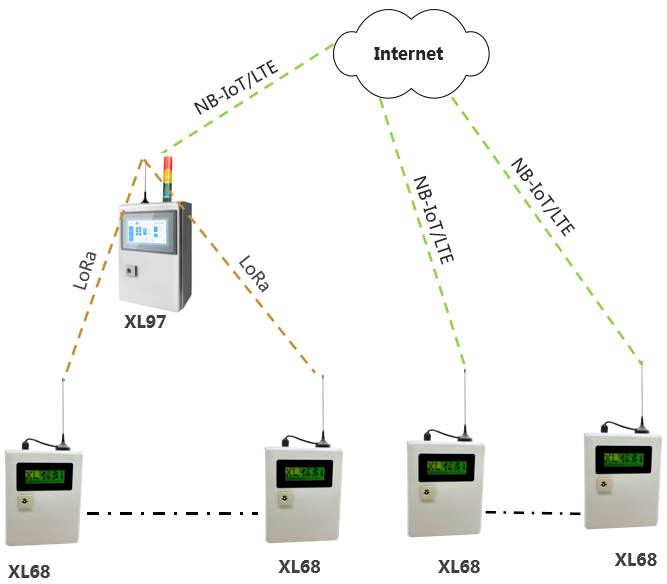 在需要監(jiān)測(cè)環(huán)境參數(shù)的場(chǎng)景,選擇XL97網(wǎng)關(guān)終端,讀取傳感器的數(shù)據(jù),通過4G/NB推送至監(jiān)控平臺(tái);