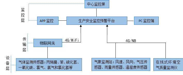 工業(yè)化工園區(qū)生產(chǎn)安全監(jiān)控系統(tǒng)采用分層拓撲結(jié)構,分為設備采集層、傳輸層、監(jiān)控層等。