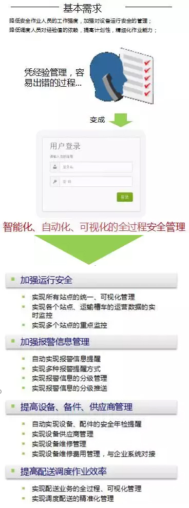實(shí)時(shí)動(dòng)態(tài)掌握儲(chǔ)罐運(yùn)行數(shù)據(jù)、車輛罐體運(yùn)行數(shù)據(jù)、車輛行駛數(shù)據(jù)、客戶加氣數(shù)據(jù)、客戶用氣數(shù)據(jù)等;實(shí)現(xiàn)設(shè)備遠(yuǎn)程無(wú)線實(shí)時(shí)監(jiān)測(cè)、控制及運(yùn)行異常預(yù)警、報(bào)警等。