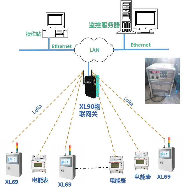 XL69無(wú)線(xiàn)采集終端安裝、固定在電焊機(jī)上;配互感器等信號(hào)采集、輸入模塊,參數(shù)按焊機(jī)技術(shù)參數(shù)配。