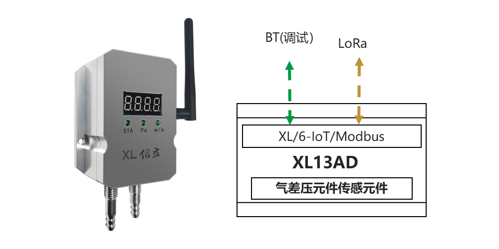 XL13AD無(wú)線風(fēng)差壓傳感器,適用于室內(nèi)外壓差監(jiān)測(cè),排風(fēng)管、空調(diào)管內(nèi)外氣壓監(jiān)測(cè),支持LoRa上傳。