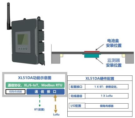 井蓋移動(dòng)監(jiān)測(cè):選擇低功耗無(wú)線(xiàn)傾角傳感器XL51DA實(shí)現(xiàn)。