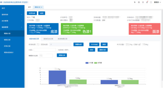 可視化操作界面:系統(tǒng)采用可視化直觀調(diào)漆界面設(shè)計,實時顯示已倒入的原料重量,精準(zhǔn)計算;