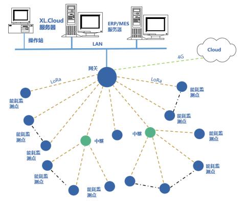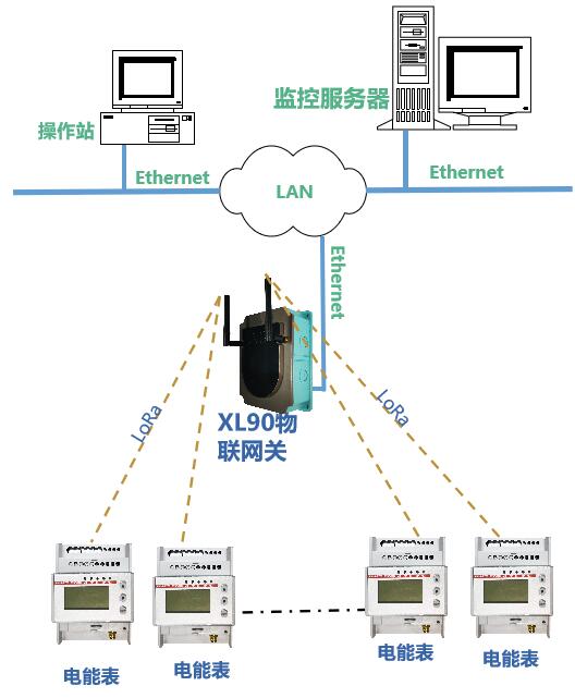 DTSD3366XX/XL無線多功能電能表獲取數(shù)據(jù),通過LoRa無線傳輸方式上傳至XL90網關;XL90網關計算分析讀取的能耗數(shù)據(jù),并通過Ethernet、Wi-Fi、4G等通信方式,將數(shù)據(jù)上傳至XLSCADA平臺。