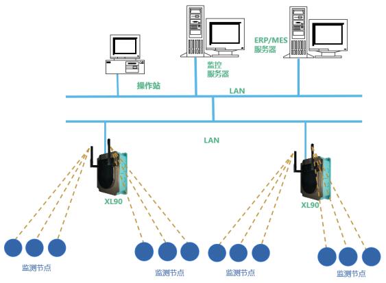 解決方案:XL90物聯(lián)網(wǎng)關(guān)無線讀取監(jiān)測節(jié)點的數(shù)據(jù),進(jìn)行處理、協(xié)議轉(zhuǎn)換,通過以太網(wǎng)(Ethernet)或Wi-Fi,接入局域網(wǎng)轉(zhuǎn)發(fā)數(shù)據(jù)至MES、ERP、EMS等工廠數(shù)字化平臺。