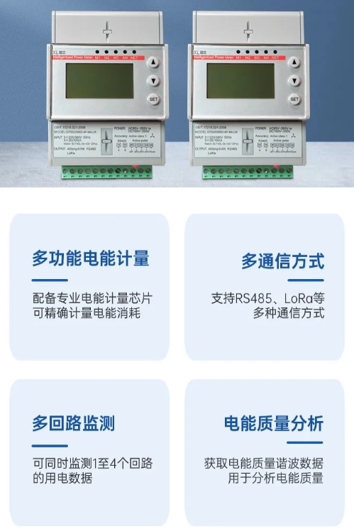 選擇DTSD3366XL無線多功能電表,監(jiān)測各節(jié)點用電能耗情況。